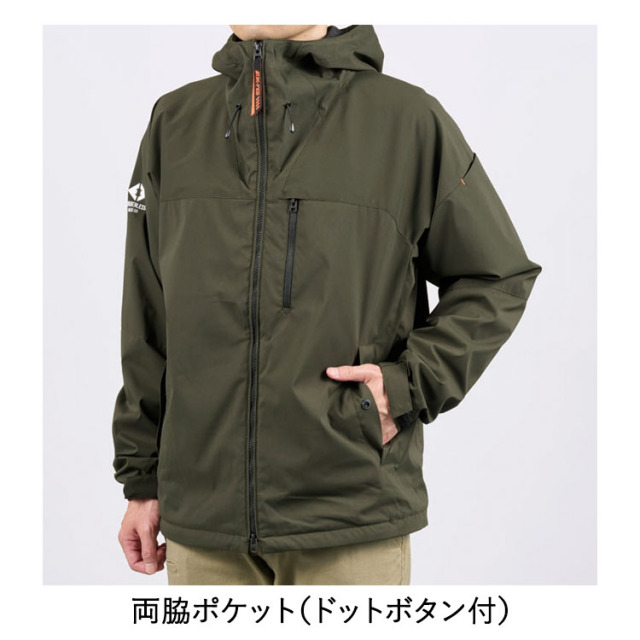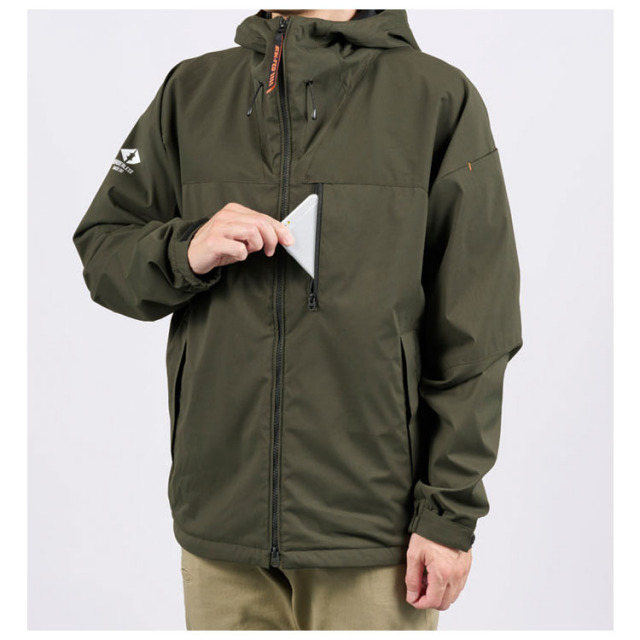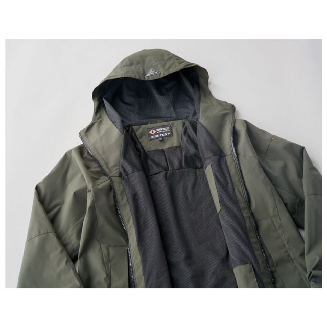 かさ高起毛メッシュの裏地使用で保温性を生む空気層を生かし、耐久撥水・防風加工した軽量ストレッチシェルと融合させたシルエットとデザインに落とした新コンセプト超軽量防寒