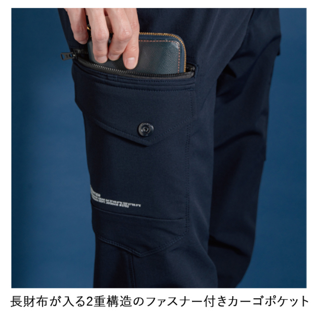 ●長財布が入る2重構造のファスナー付きカーゴポケット