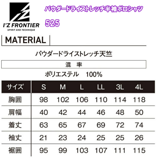 【サイズ S M L LL 3L 4L】
