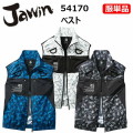 収納可能なフックハンガーや個性的なプリント柄とJawinロゴプリントが特長の空調ウエア。