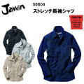 【4L・5L】【春夏】ジャウィン Jawin ストレッチ長袖シャツ 56604 S-5L 長袖シャツ 麻ストレッチ ポリエステル 綿 麻 夏用 作業服 自重堂
