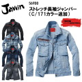【春夏】Jawin ストレッチ長袖ジャンパー 56900 SS-5L ブルゾン ジャケット デニム 接触冷感 伸縮 野帳対応 ワークウエア 綿68% ナイロン31% ポリウレタン1% レディース対応 作業服 作業着 ジャウイン 自重堂 目玉