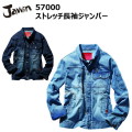 Jawin ジャウィン ストレッチ長袖ジャンパー 57000 SS-5L 革ラベル ドットワンポイント タックボタン 左袖ペン差し 内ポケット 釦 68% ポリエステル 16% ナイロイ 14% ポリウレタン 2% レディース対応 作業服 自重堂 目玉