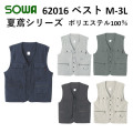 【春夏】 62016 ベスト M-3L 5色 夏鳶 ニッカベスト 鳶シャツ トビシャツ 鳶服 涼しい かっこいい オシャレ お洒落 夏用 作業服 仕事着 作業着 現場 SOWA 桑和