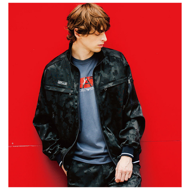 ■独自のカモフラ迷彩(27番&28番色)とプランドロゴ(97番&98番色)の異なるジャガード柄の2タイプをラインナップ。さりげなく、しかし遺憾なく、アイズイズムを表現します。