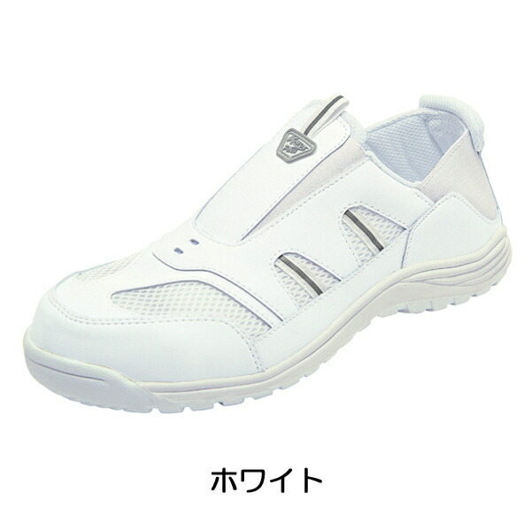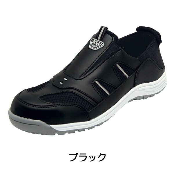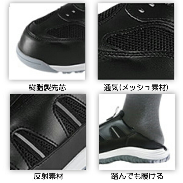 メッシュ素材により通気性が抜群で、指先をガードする樹脂先芯を塔載。