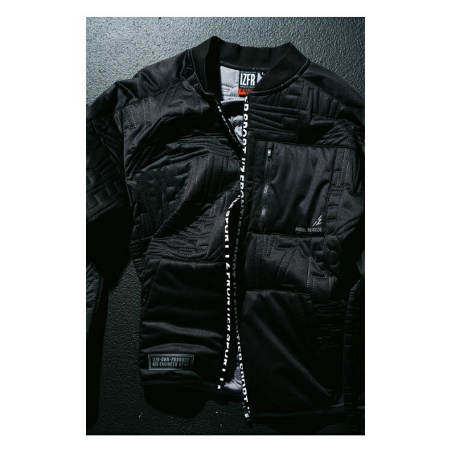 防風フィルムをボンディングした表素材、軽量化を目的とした中綿、更なる防風機能を高める単独フィルム、そして表面と同じ素材の計4枚5重構造のハイスペックモデル。軽量ながらも抜群の防風効果を発揮します。