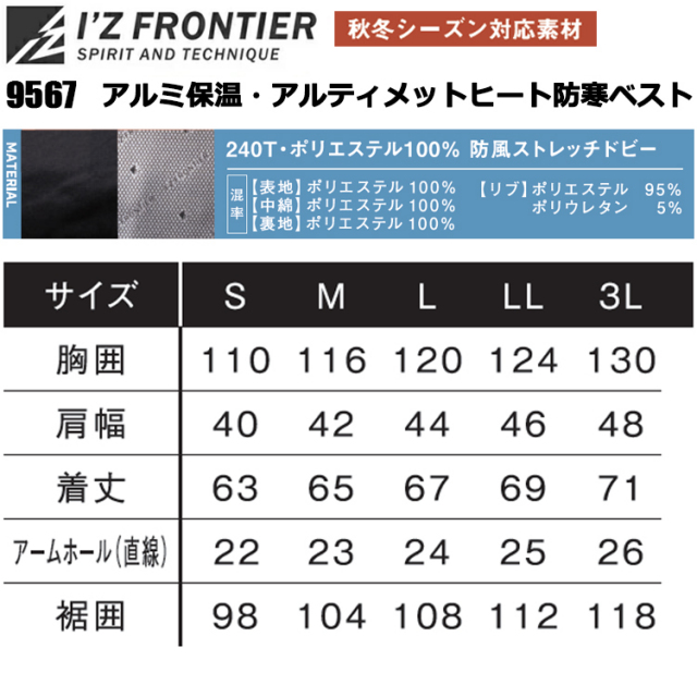 【素材 表地:ポリエステル100% 中綿:ポリエステル100% リブ:ポリエステル95% ポリウレタン5%】