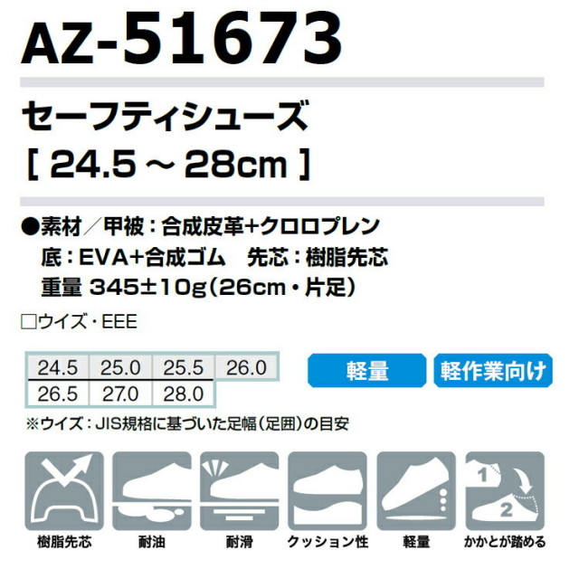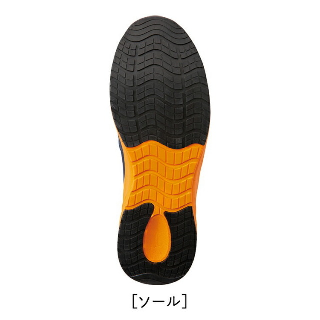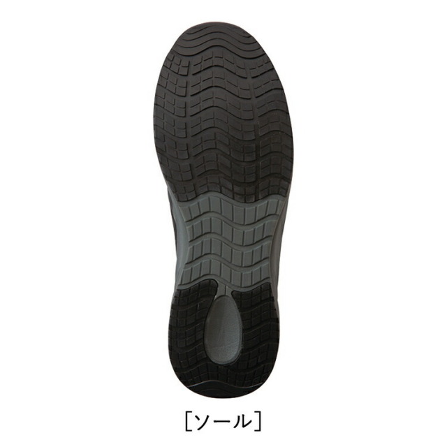 高反発EVAスーパークッション搭載の超軽量モデル、踵が踏めるスリッポンタイプ。耐油・耐滑仕様で安全面にも配慮。