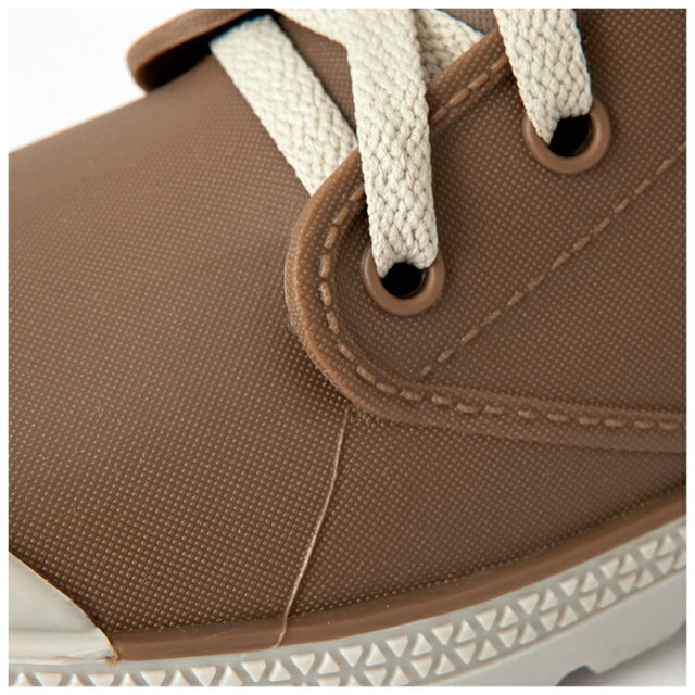 ◆ベロは途中までアッパーとつながり、ステッチは型押しになっているので、水の侵入を防ぎます。