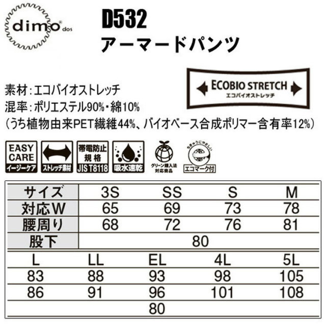 ・バイオPET のストレッチ裏綿を採用し、JIS T8118 の基準をクリアした商品。