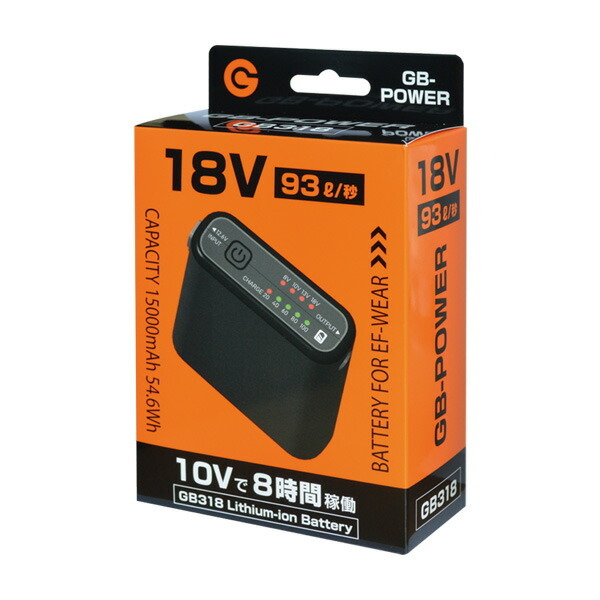GB-POWERのバッテリーもこの特長を生かし、最大15Vで4.5時間(※)稼働する大容量で、他社の同容量の製品に比べてコンパクト&軽量化を追求しました。