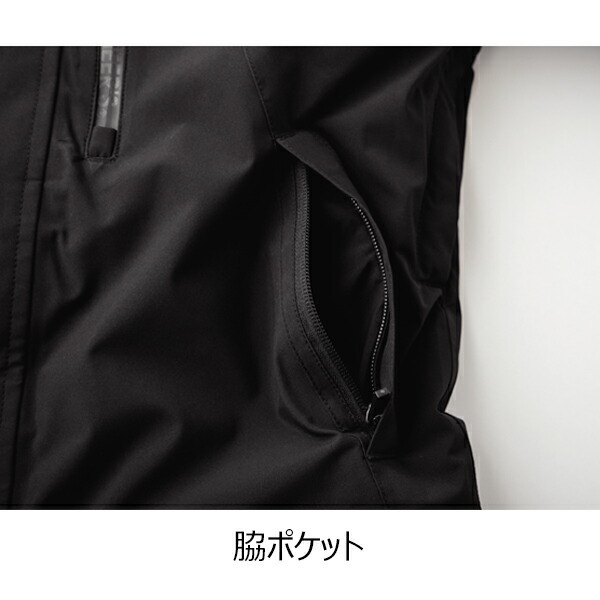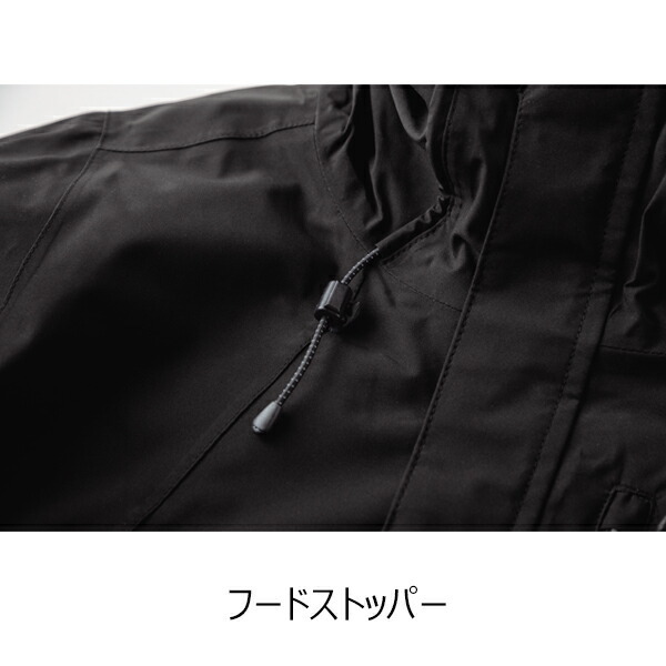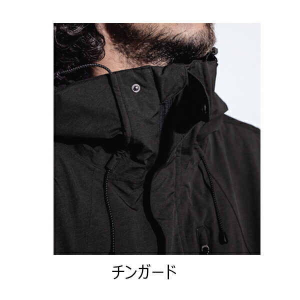●表素材は防風性と防水性に優れ、ムレを軽減する耐水圧 15,000mm、透湿度 5,000g/ ・24h のハイスペックな生地を使用。