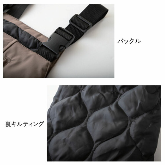 ●合わせるトップスやアウターで様々なシーンにマッチする中綿入り防寒サロペット。