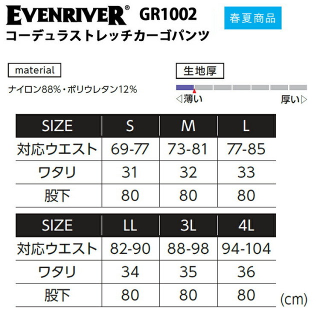 イーブンリバー EVENRIVER GR1002 コーデュラストレッチカーゴパンツ S-3L パンツ ボトムス ズボン 春夏 接触冷感 ひんやり作業服 目玉