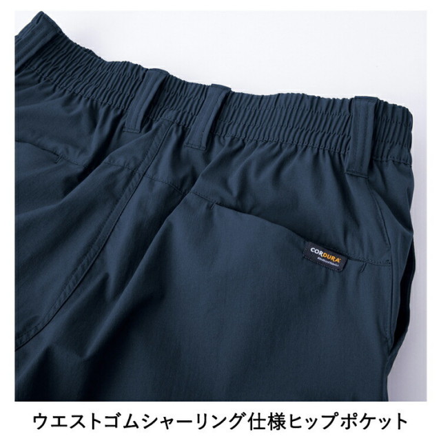 「強度の高いコーデュラ素材を使用した、人気のナイロンストレッチウェア」