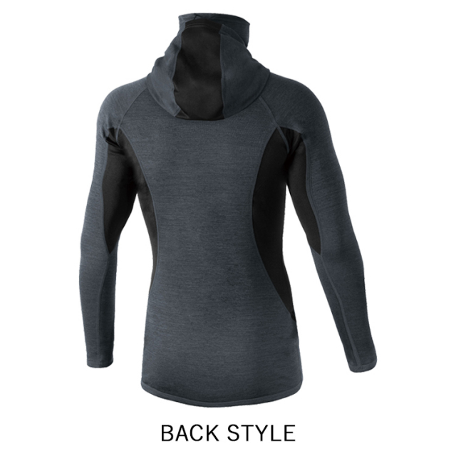 ●伸縮性が高く、通気性のある素材と極厚の裏起毛素材をパーツとして組み合わせることで、しっかりと体温をキープしながら不快なムレを抑制する。ノースリーブタイプはボディ部分はしっかり