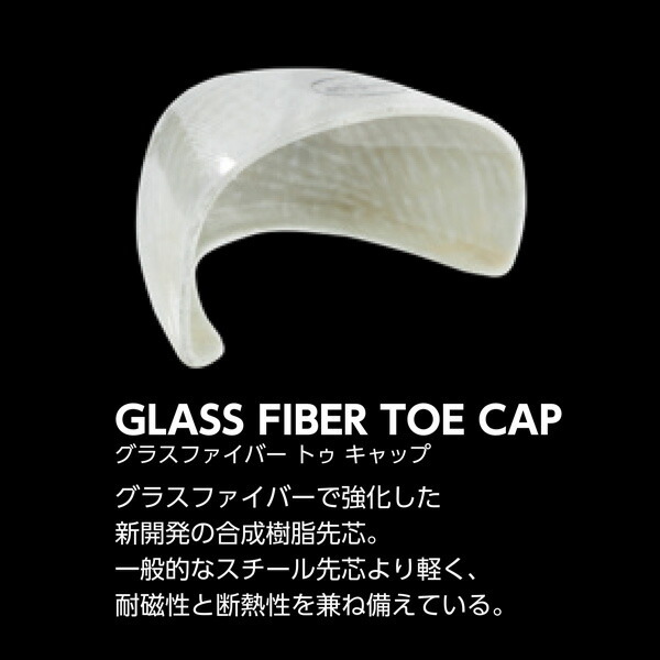 「JSAA規格 A種 プロスニーカー」であり、グラスファイバーで強化した合成樹脂製の先芯により、つま先をしっかり保護してくれます。