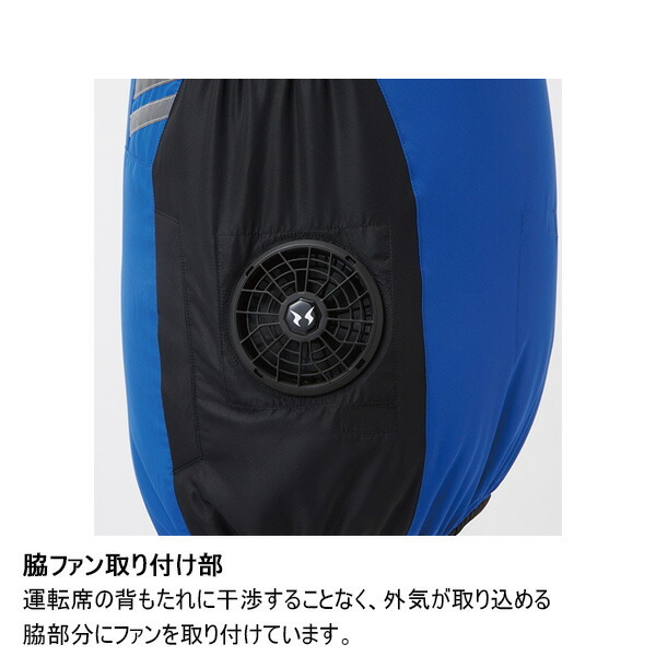 ・運転席の背もたれに干渉することなく、外気が取り込める脇部分にファンを取り付けています。