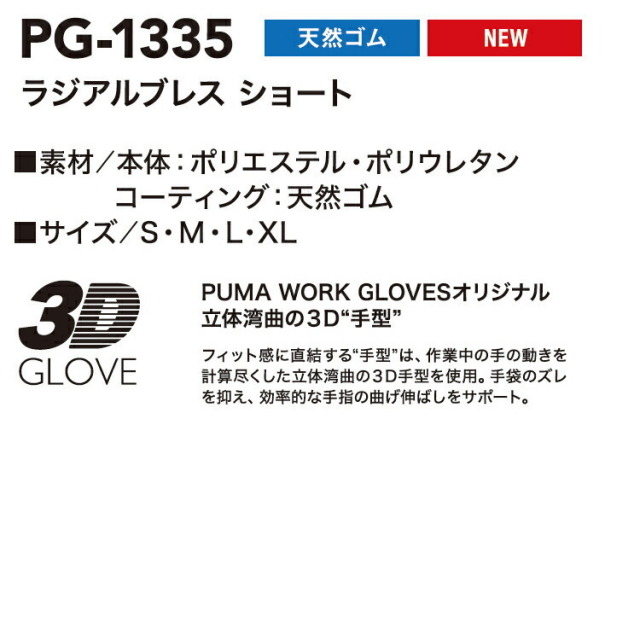 PUMA WORK GLOVESオリジナル立体湾曲の3D"手型”