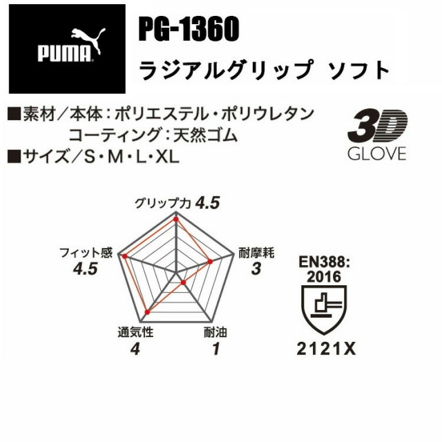 PUMA WORK GLOVES オリジナル立体湾曲の3D “手型”