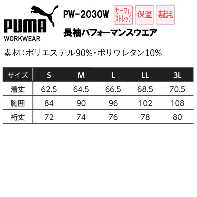 PUMA WORKWER ユニワールド PW-2030W 長袖パフォーマンスウエア