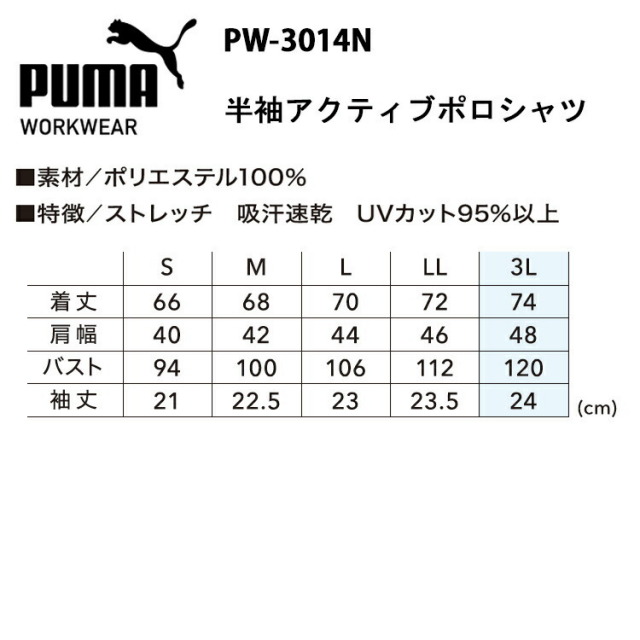 作業ウェアPUMA半袖アクティブポロシャツ PW-3014N
