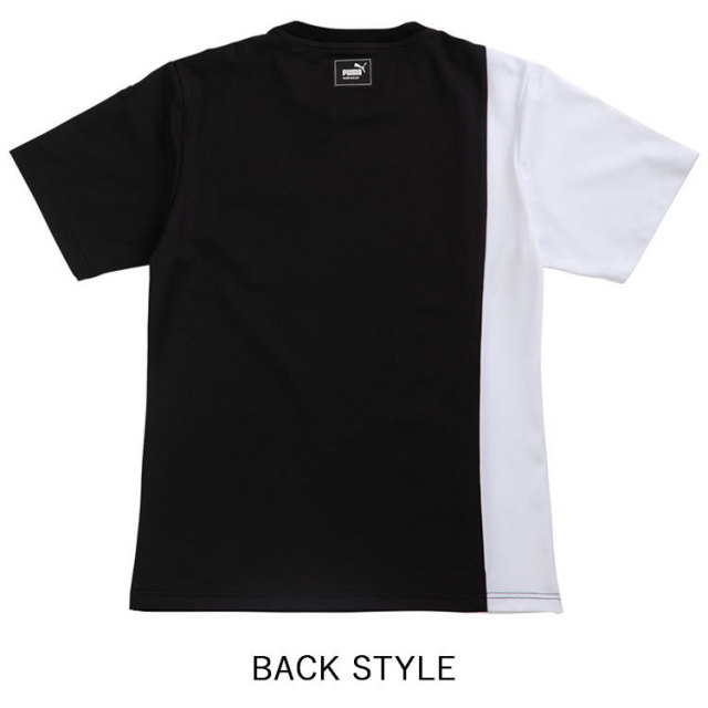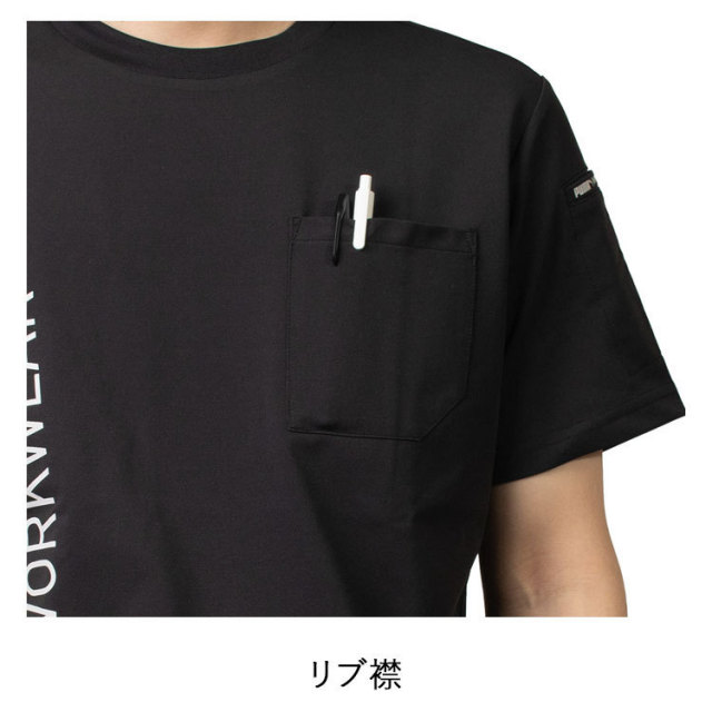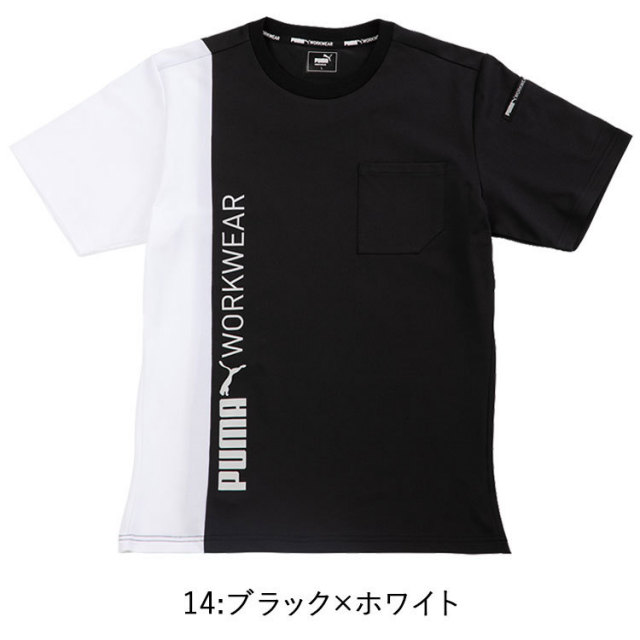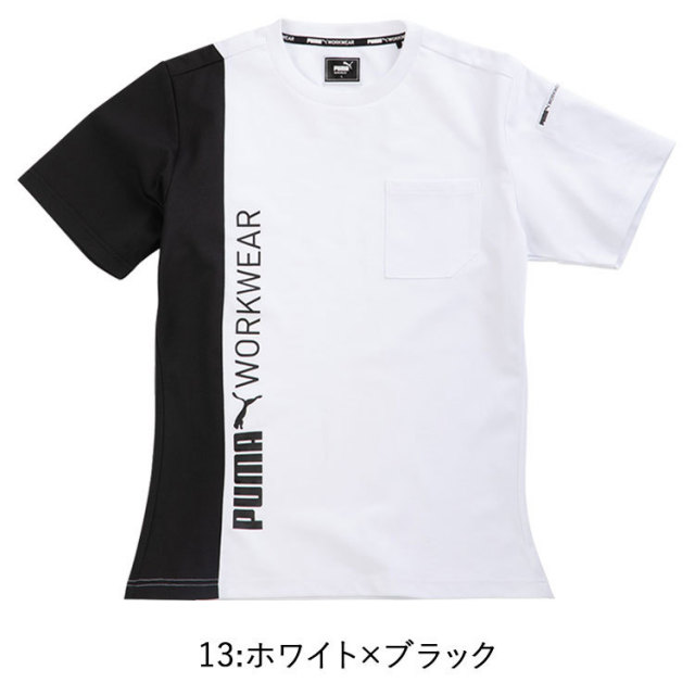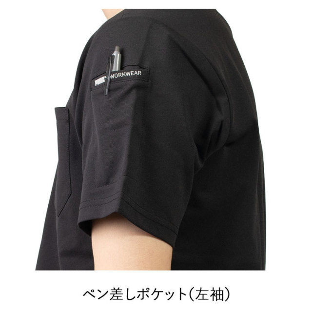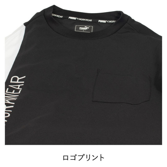 PUMAのノウハウをワークTシャツに搭載。UVカット95%以上、汗でベタつかない速乾性、ハリ感とストレッチを兼ね備え、身体のラインを拾いにくいフォルム。