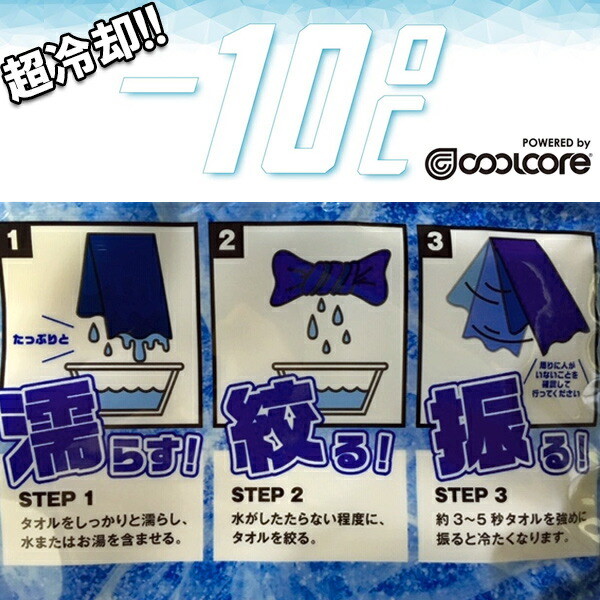 濡らす!絞る!振る!の3ステップで超冷却クールコアタオルの出来上がり!