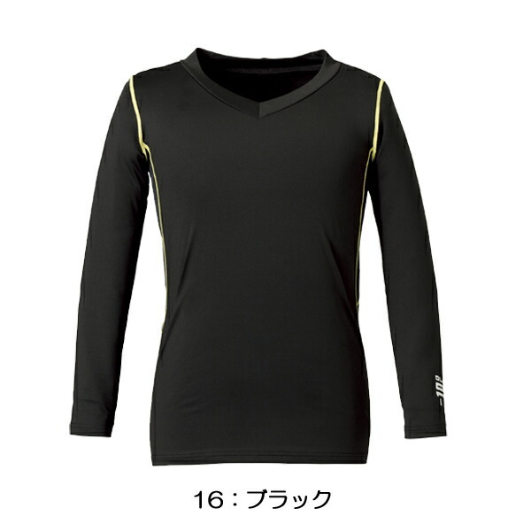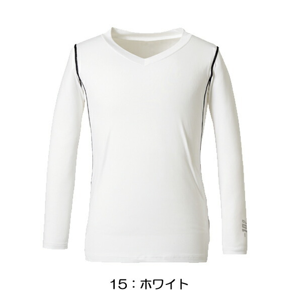 Vネック仕様で、第1ボタンを開けたポロシャツに重ね着しても見えにくい深さです。