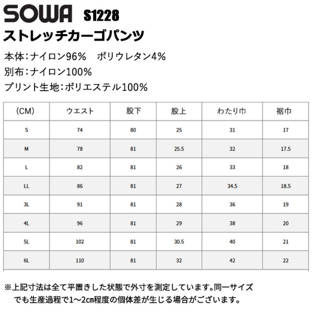STUD’S 桑和 SOWA S1228 ストレッチカーゴパンツ