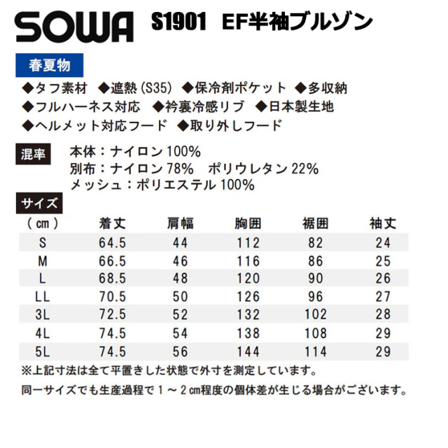 桑和 STUD'S SOWA S1901 EF半袖ブルゾン