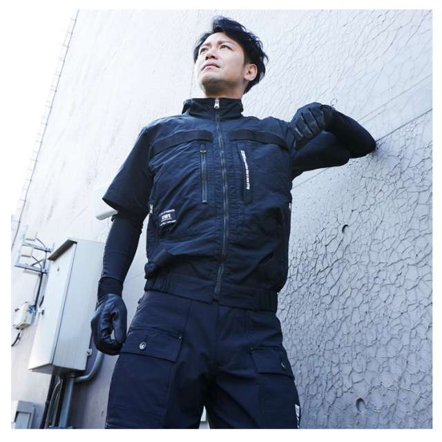 ・年間作業服同等の引裂き・引張り強度を誇る日本製ナイロンタッサーを使用した耐久性に特化したハードワーク向けEFウェアです。