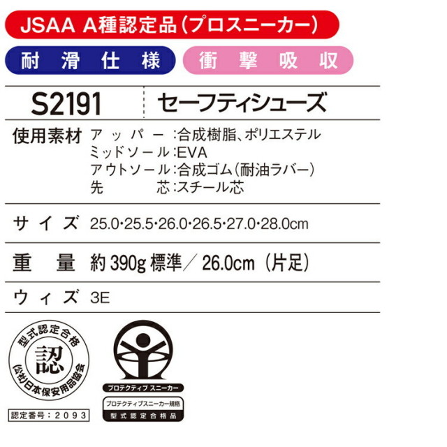【素材 アッパー:合成構脂、ポリエステル、ミッドソール:EVA アウトソール:合成ゴム(耐油ラバー)、芯:スチール芯】