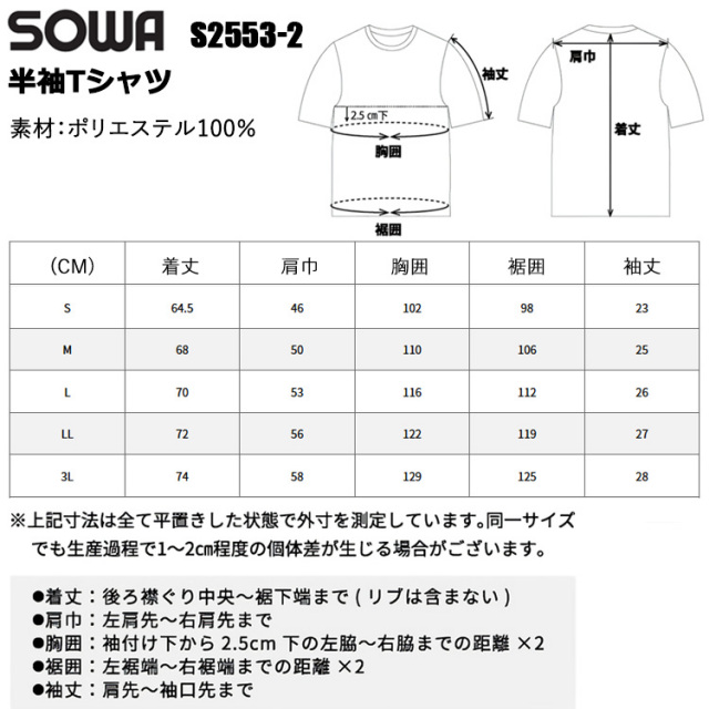 【サイズ S M L LL 3L】