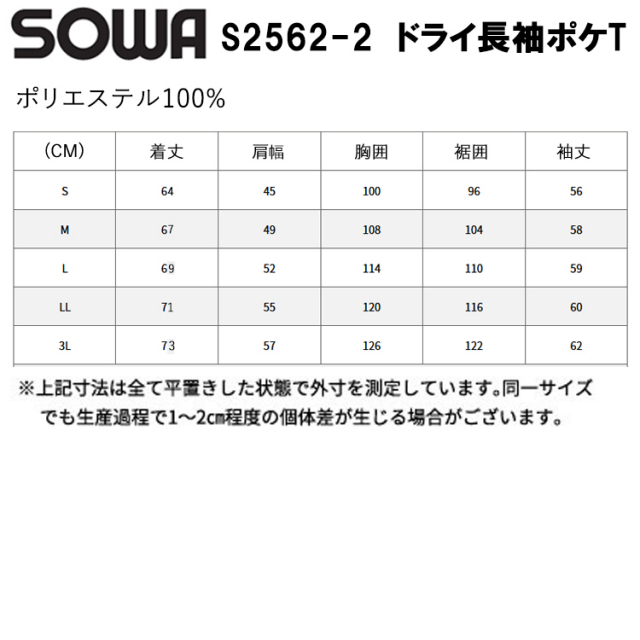 桑和 STUD'S SOWA S2562-2 ドライ長袖ポケT