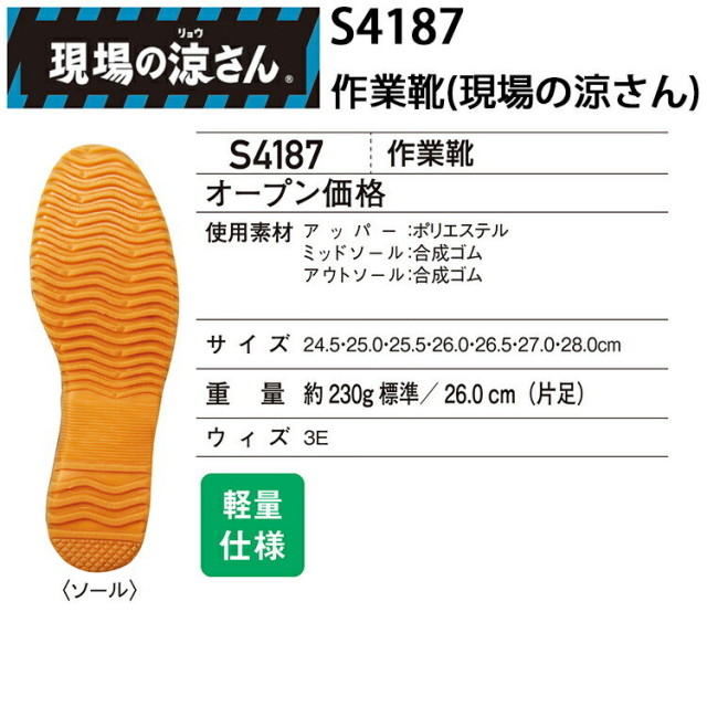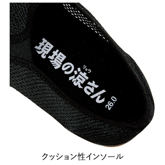 夏場に快適で超爽快。メッシュ素材を使用した高通気作業靴。クッション性インソール使用。
