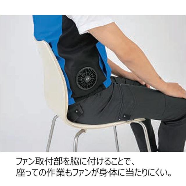 ■ファン取付部を脇に付けることで、座っての作業もファンが身体に当たりにくい。