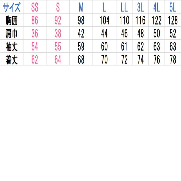 【サイズ SS S M L LL 3L 】
